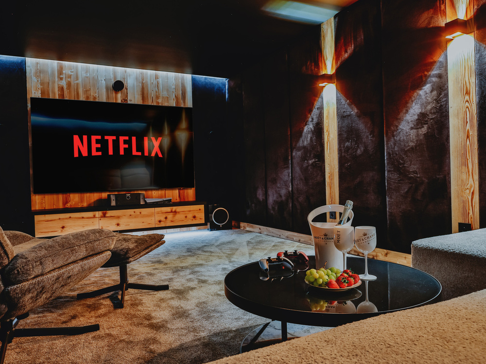 Czorsztyn Prestige Ville WCzorsztyn Prestige Ville każda willa posiada własną salę kinową z telewizorem 100”,nagłośnieniem typu surround oraz profesjonalnym wygłuszeniem, które zapewnia kinowe brzmienie i pełen komfort